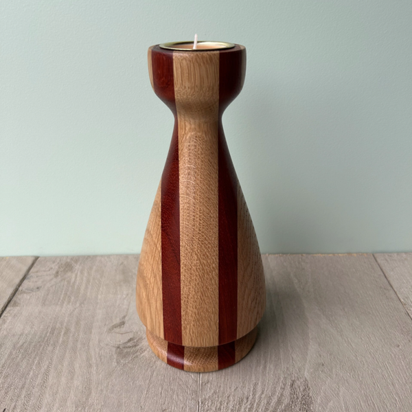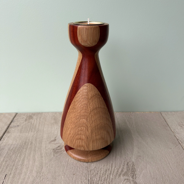 Houten Kerstboom met een theelichtje bovenop In de houtsoorten: Eiken en Padoek